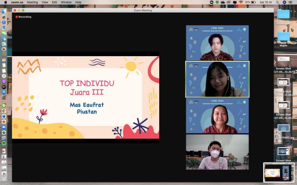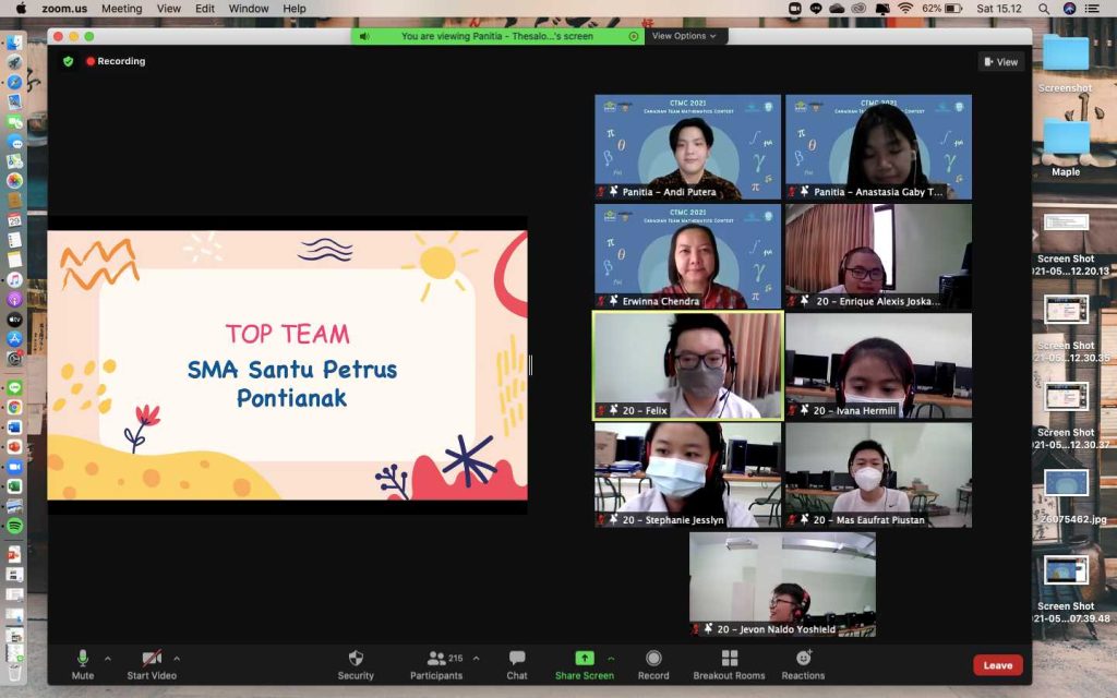Pada Sabtu 29 Mei 2021, Program Studi Matematika Universitas Katolik Parahyangan (UNPAR) yang bekerja sama dengan Centre for Education in Mathematics and Computing (CEMC) University of Waterloo kembali menyelenggarakan acara Canadian Team Mathematics Contest (CTMC). CTMC sebelumnya diselenggarakan pada tahun 2019. Pada tahun 2020, CTMC juga direncanakan untuk diselenggarakan tetapi dibatalkan karena pandemi COVID-19. Karena pada tahun 2021 ini, keadaan belum membaik maka penyelenggaraan CTMC dilaksanakan secara daring dengan menerapkan protokol kesehatan dan pembatasan sosial. CTMC UNPAR dibuka dengan sambutan dari:
