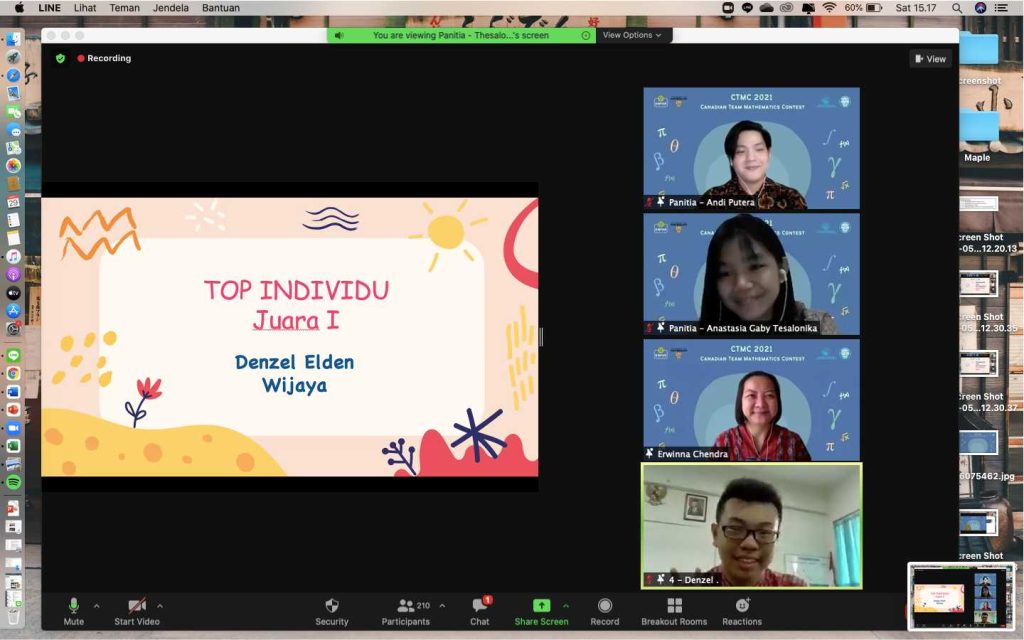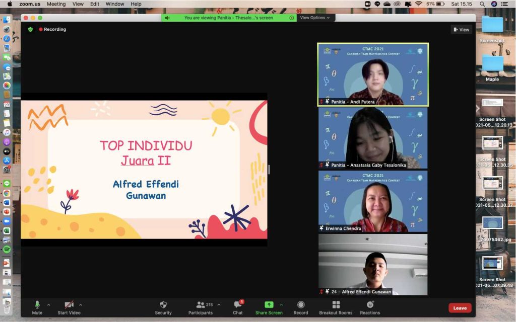 Juara 2 Individual diraih oleh Alfred Effendi Gunawan dari BINUS School Serpong.