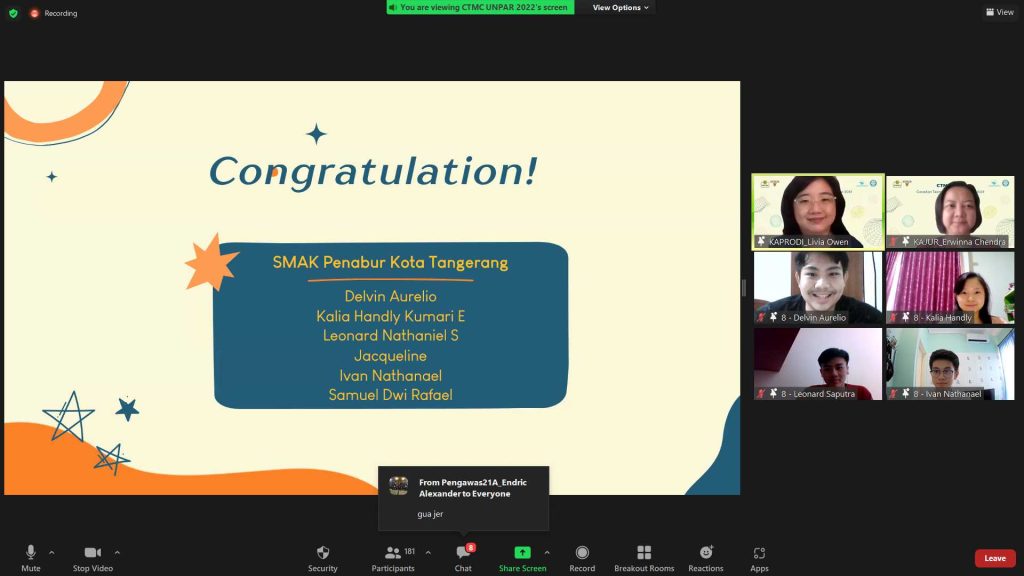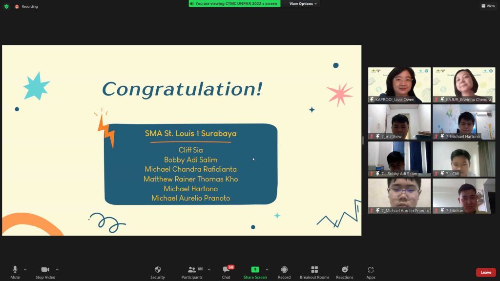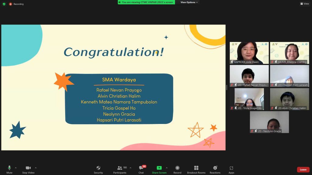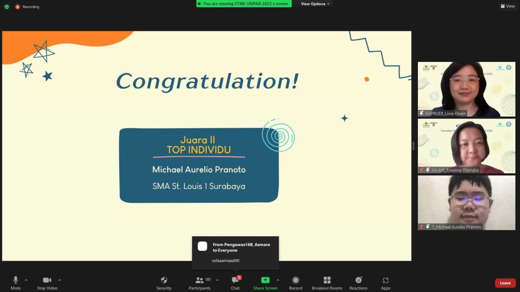 Setelah dilakukan penilaian, berikut ini merupakan pemenang dari CTMC UNPAR 2022. Terdapat 2 kategori pemenang, yakni juara individual dan juara tim.