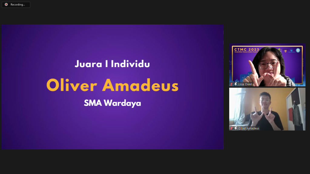 - Juara I Individu: Oliver Amadeus dari SMA Wardaya.