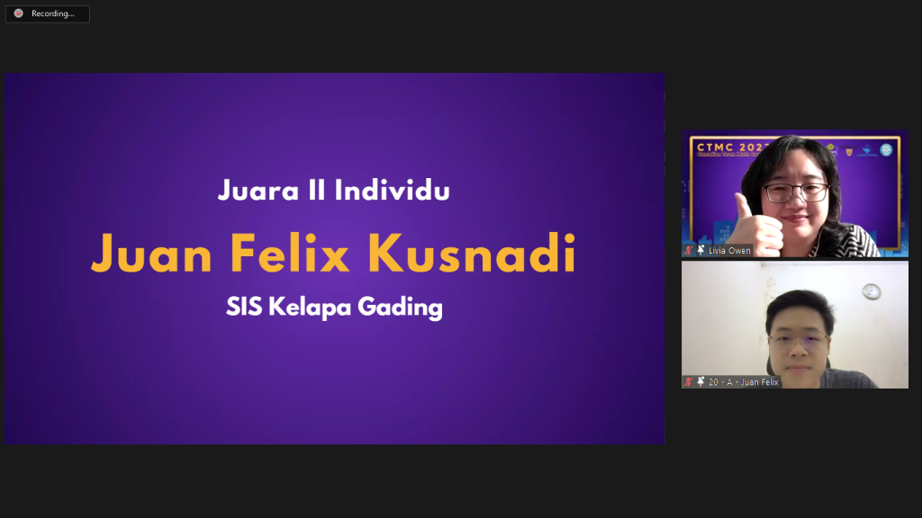 - Juara II Individu: Juan Felix Kusnadi dari SIS Kelapa Gading.