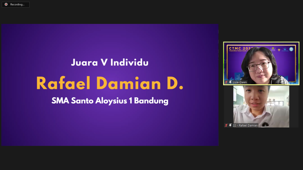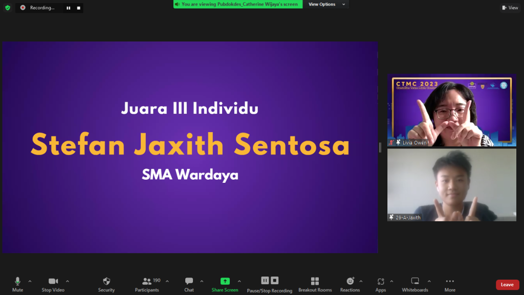 - Juara III Individu: Stefan Jaxith Sentosa dari SMA Wardaya.