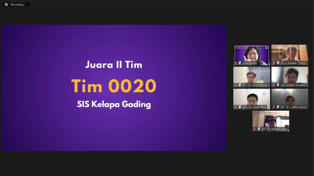 - Juara II Tim: SIS Kelapa Gading yang terdiri dari Arkan Haikal Suratman, Juan Felix Kusnadi, Dexter Tjandra, Verdy Junez, John Haritz Cross, dan Brayden Andersen Lim.