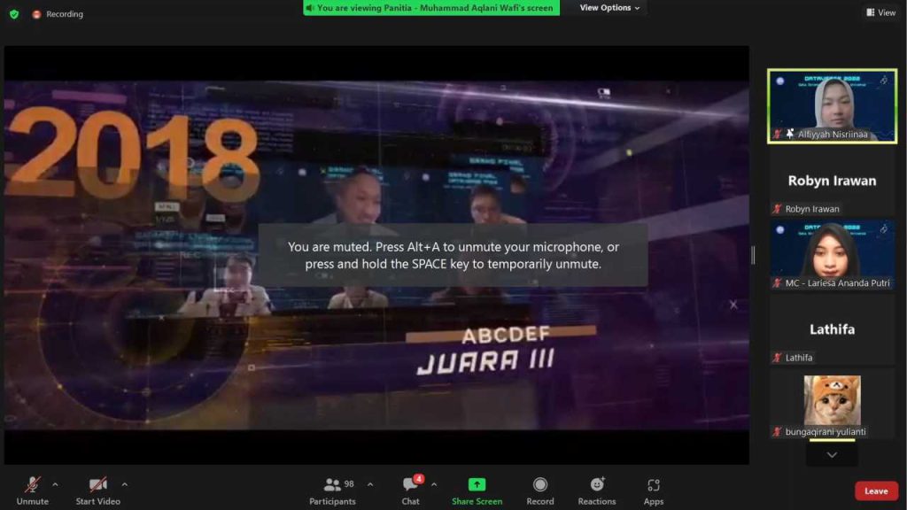 Program Studi Sarjana Matematika Universitas Katolik Parahyangan (UNPAR) mengirimkan 3 tim perwakilan dengan masing-masing terdiri dari 3 mahasiswa ke acara Data Science and Data Analytics Universe (DATAVERSE) Himpunan Mahasiswa Matematika, Fakultas Sains dan Teknologi, UIN Syarif Hidayatullah Jakarta yang bertemakan “Control the Data, Rule the World” yang diselenggarakan pada 26 Juni s.d. 20 Agustus 2022 melalui media daring.