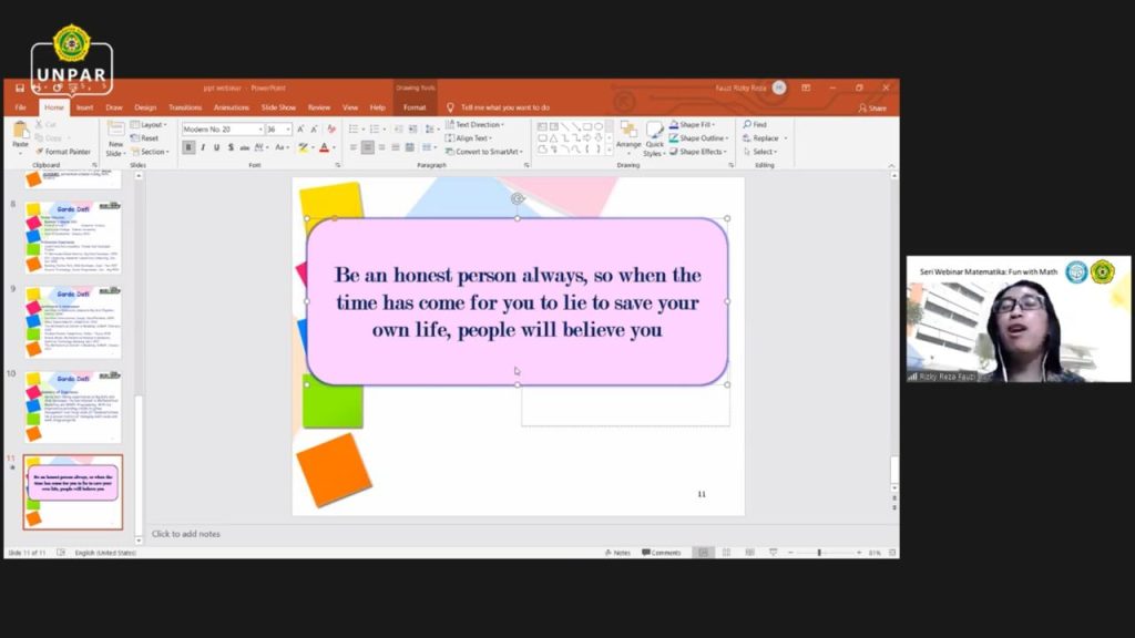 Sampai jumpa pada seri webinar Matematika UNPAR selanjutnya!