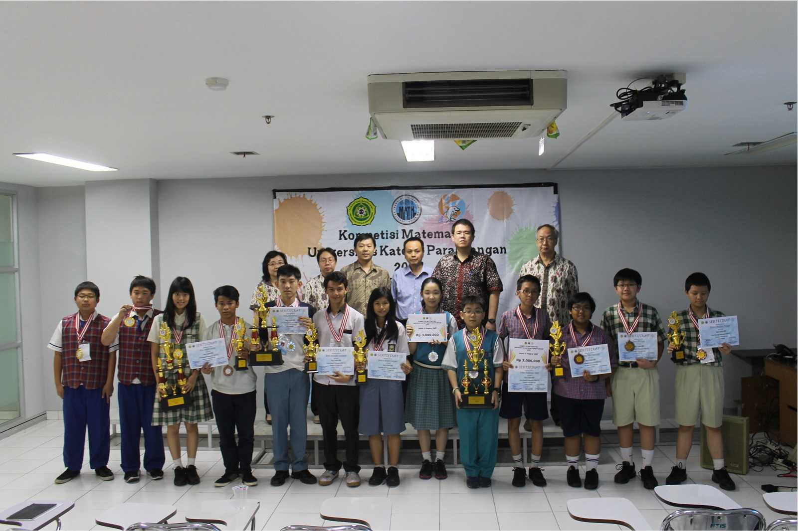 Pada hari Jumat-Sabtu, 13-14 November 2015, Himpunan Mahasiswa Matematika dan Program Studi Matematika Universitas Katolik Parahyangan menyelenggarakan KOMPETISI MATEMATIKA UNPAR 2015 untuk tingkat SMP dan SMA se-Sumatera, Jawa, dan Bali.