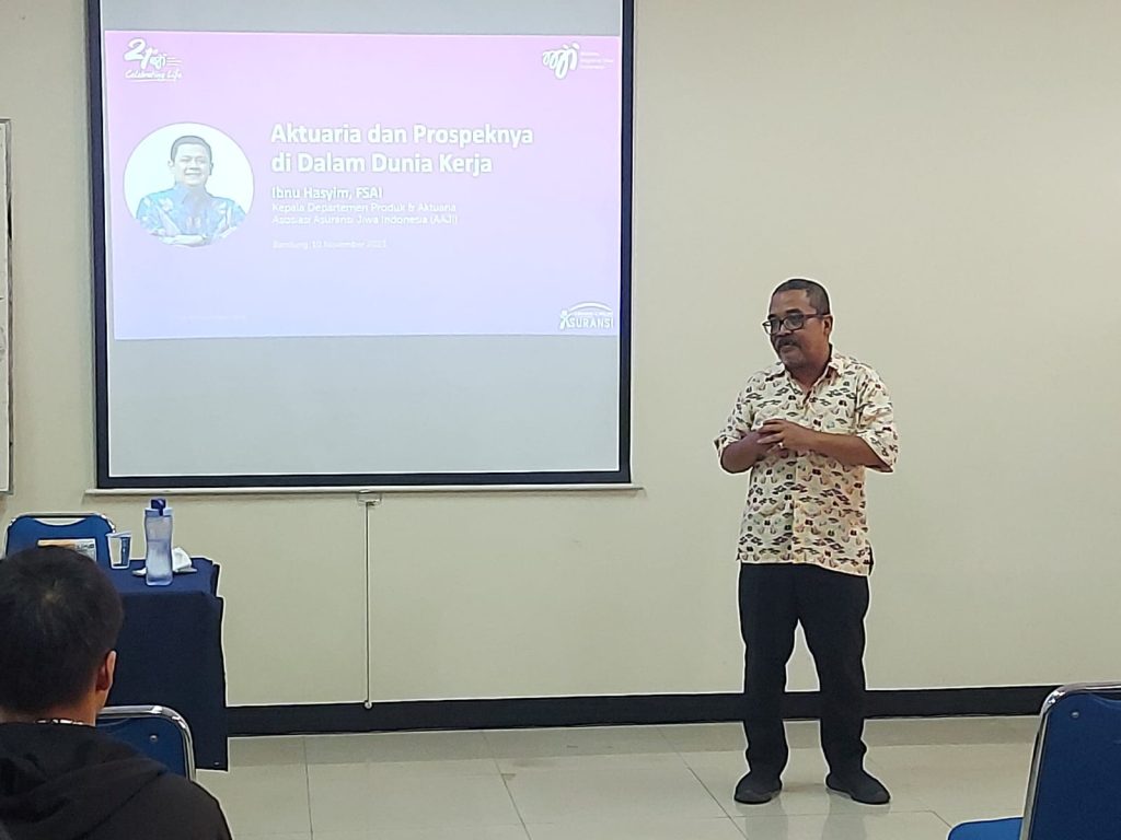 Dalam kegiatan literasi Aktuaria ini hadir sebagai narasumber dari pihak AAJI adalah Bapak Ibnu Hasyim, FSAI dari Taspen Life yang juga merupakan Kepala Departemen Produk & Aktuaria, Dewan Pengurus AAJI. Dalam kesempatan ini Bapak Ibnu Hasyim, FSAI memaparkan apa itu aktuaria, bidang-bidang ilmu yang terkait dengan aktuaria, prospek karir di bidang Aktuaria, pekerjaan yang digeluti oleh seorang Aktuaris dan ujian untuk sertifikasi sebagai ajun aktuaris (ASAI) ataupun aktuaris (FSAI) dari Persatuan Aktuaris Indonesia (PAI). Terkait dengan penyetaraan ujian sertifikasi ASAI, pada Program Studi Matematika UNPAR saat ini terdapat 5 modul ujian PAI yang dapat disetarakan dengan ujian dari PAI.