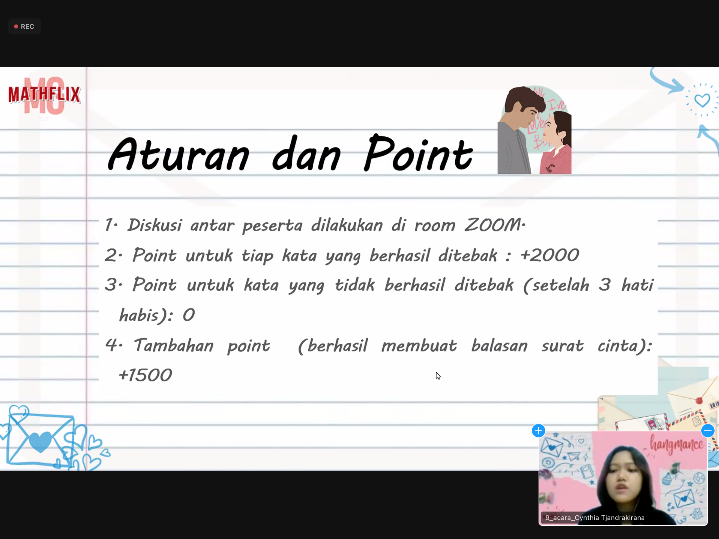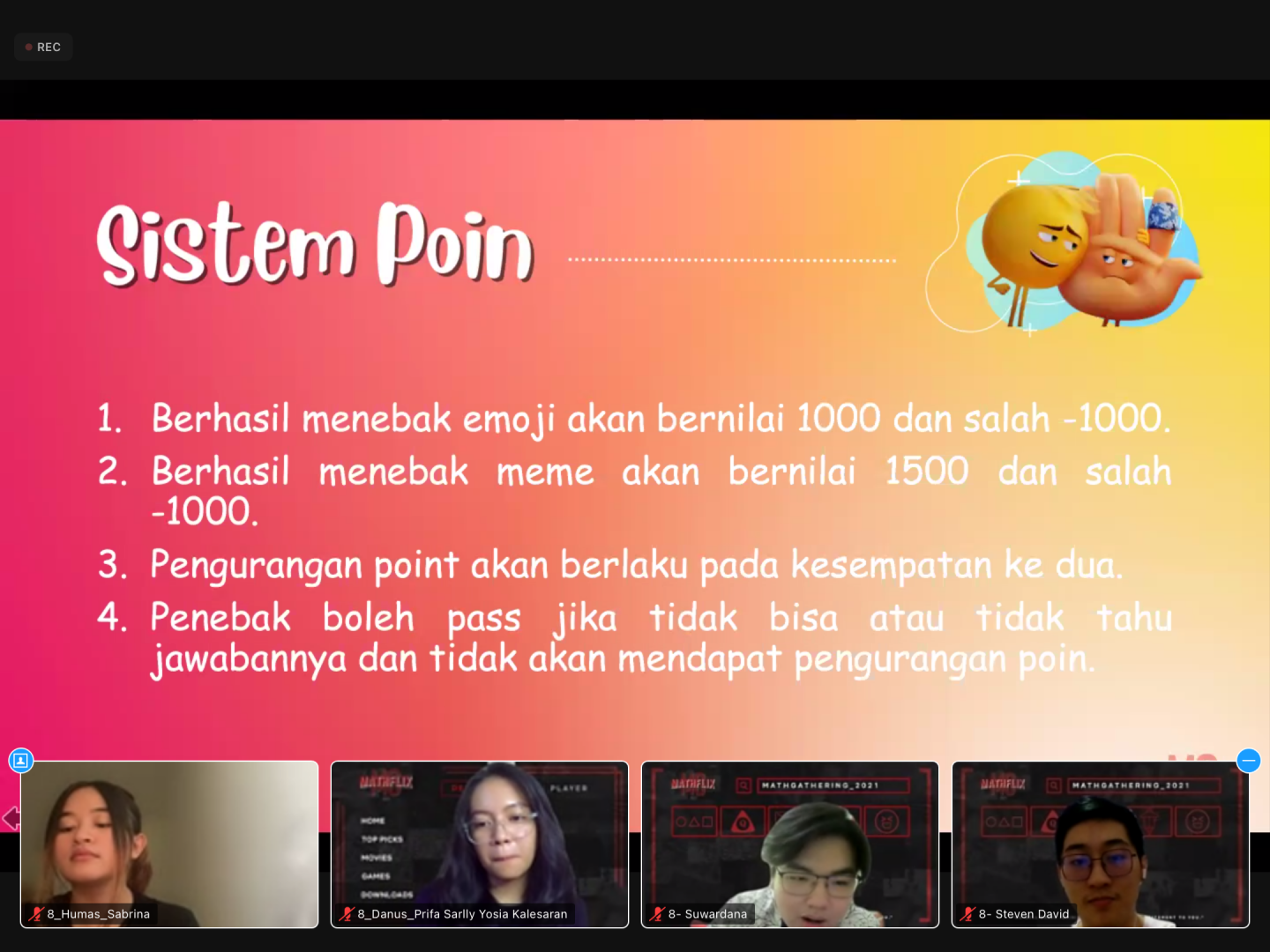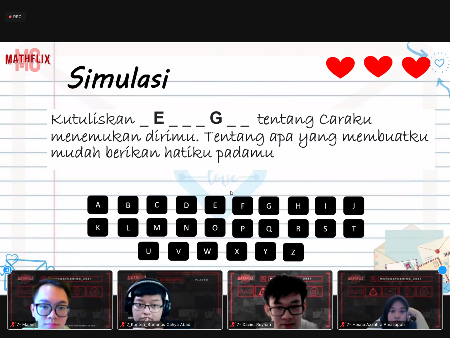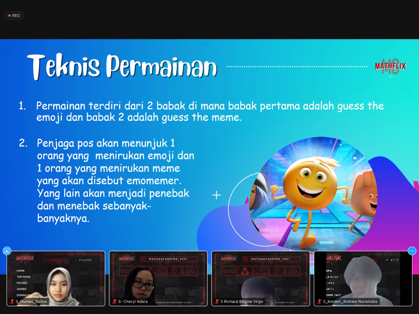 Himpunan Mahasiswa Program Studi Matematika UNPAR (HMPSMa) kembali menyelenggarakan acara Math Gathering 2021 dengan tema Mathflix. Acara ini diselenggarakan melalui media daring Zoom secara penuh pada Sabtu, 11 Desember 2021 pukul 09:00-12:30. Tujuan diadakan acara ini ialah agar para panitia yakni mahasiswa baru dapat mengenal lebih dekat mahasiswa angkatan atas dalam lingkup Program Studi Sarjana Matematika UNPAR.