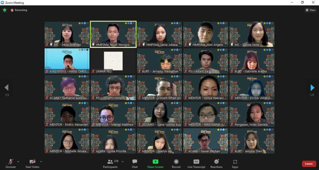 Program Studi Sarjana Matematika UNPAR menyambut para mahasiswa baru angkatan 2021 pada 9 September 2021 melalui media daring, menaati berlangsungnya kebijakan pemerintah yaitu PPKM akibat kondisi pandemi COVID-19. Terdapat 2 sesi orientasi mahasiswa, yakni Pengenalan Program Studi Sarjana Matematika dan Pengenalan Himpunan Mahasiswa.