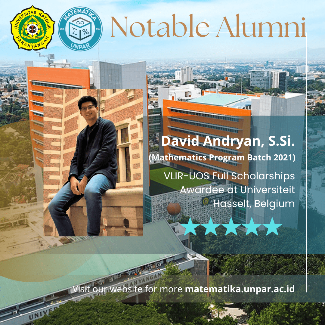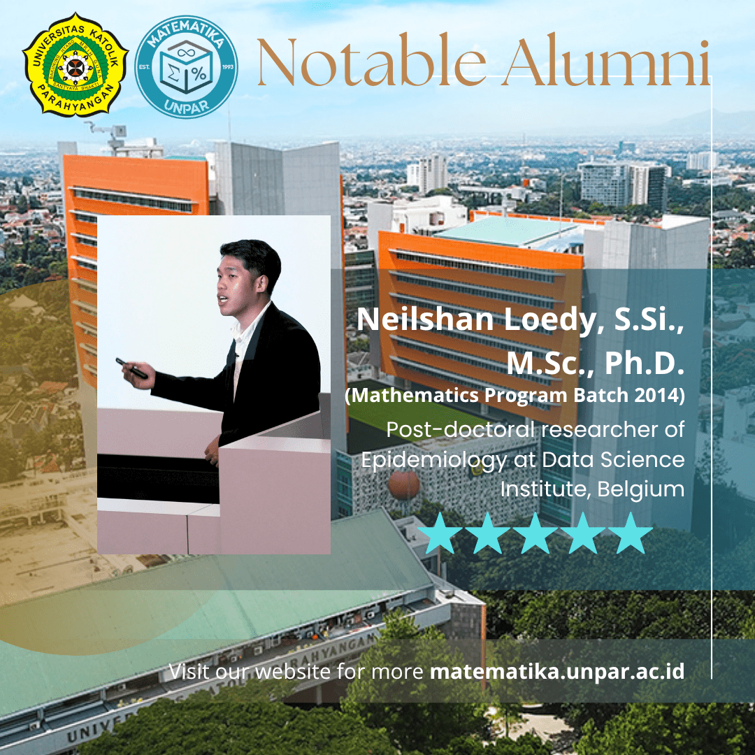 “Sebagai lulusan Matematika, saya pernah berpikir bahwa petualangan terbesar saya adalah bergulat dengan angka dan menghindari persamaan-persamaan ‘liar’ di atas kertas. Saya tidak menyangka bahwa konsep-konsep yang sama akan membentuk karier saya di bidang epidemiologi dan memandu kebijakan kesehatan masyarakat. Setiap persamaan yang saya selesaikan di Matematika UNPAR kini membantu meramalkan wabah, merancang intervensi, dan perlindungan dalam populasi. Sungguh luar biasa melihat bagaimana matematika yang paling sederhana sekalipun dapat memberikan dampak eksponensial, dan fondasi yang saya bangun selalu memberikan dampak yang berkembang berlipatganda setiap hari.”