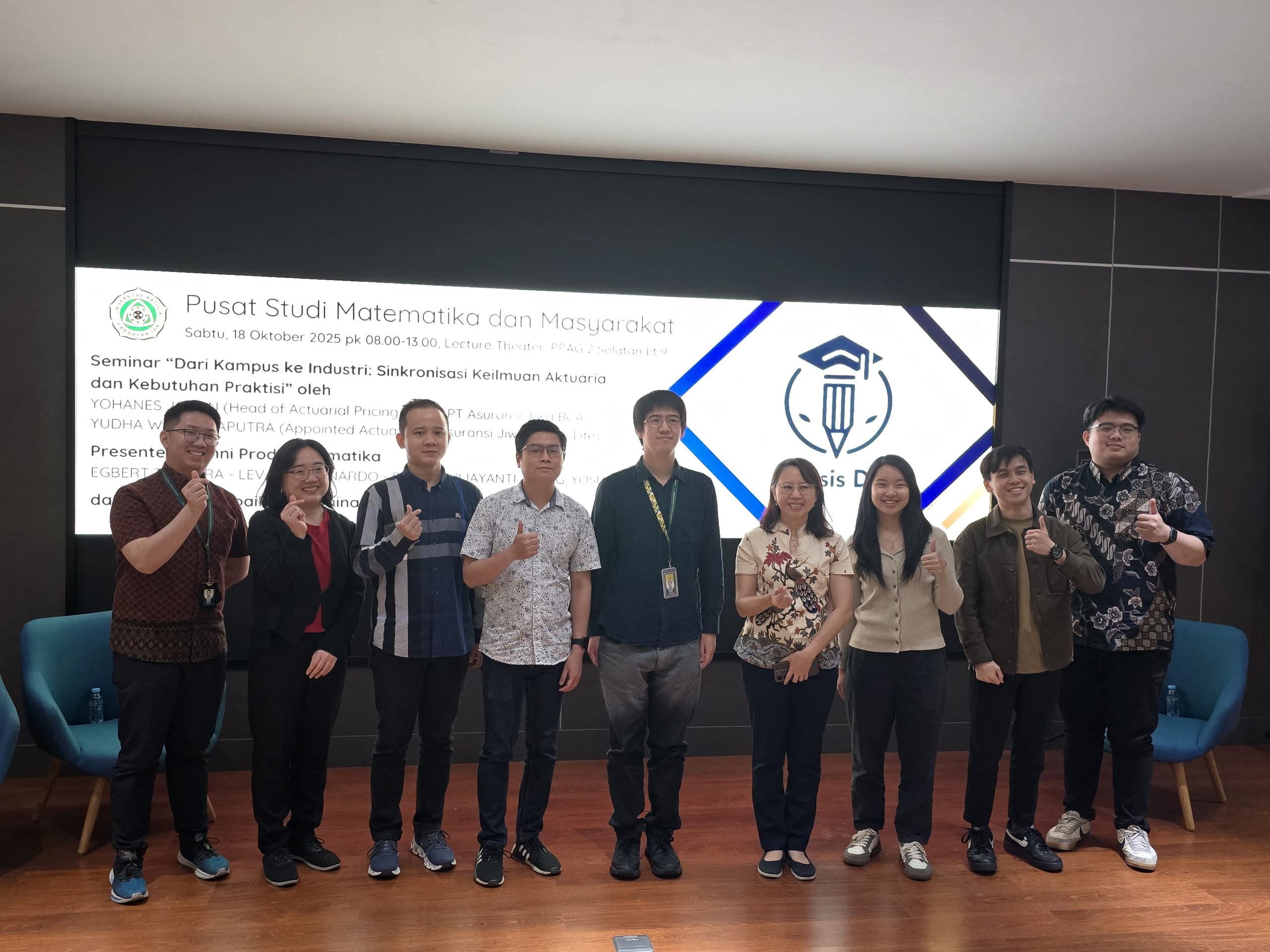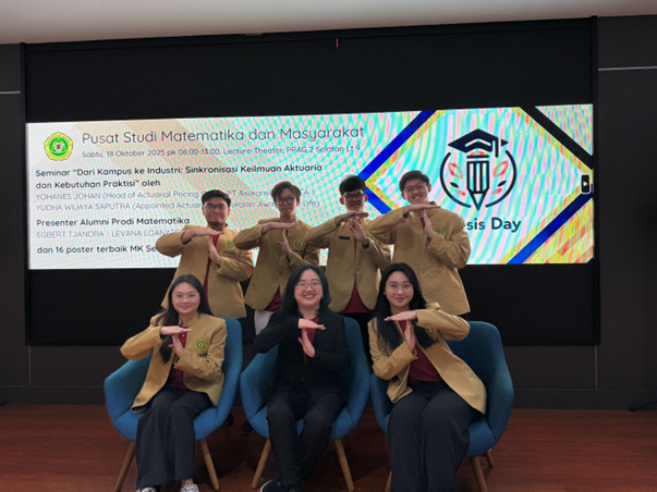 Pusat Studi Matematika dan Masyarakat kembali menyelenggarakan Thesis Day VI pada Sabtu, 18 Oktober 2025. Acara yang dikoordinasi oleh Ibu Livia Owen bersama para panitia mahasiswa ini bertempat di Lecture Theatre Lt. 9 PPAG 2 Selatan. Kegiatan ini mengusung dua sesi utama: presentasi skripsi dari alumni muda dan seminar khusus yang menjembatani dunia akademik dengan industri.