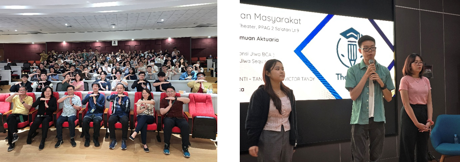 Sorotan utama Thesis Day VI adalah seminar bertajuk “Dari Kampus ke Industri: Sinkronisasi Keilmuan Aktuaria dan Kebutuhan Praktisi”. Dipandu oleh moderator Ibu Farah Kristiani, seminar ini menghadirkan dua praktisi aktuaria terkemuka: Yohanes Johan, S.Si., FSAI, AAAK (Head of Actuarial Pricing Group PT Asuransi Jiwa BCA) dan Yudha Wijaya Saputra, S.Si., FSAI (Appointed Actuary PT. Asuransi Jiwa Sequis Life).